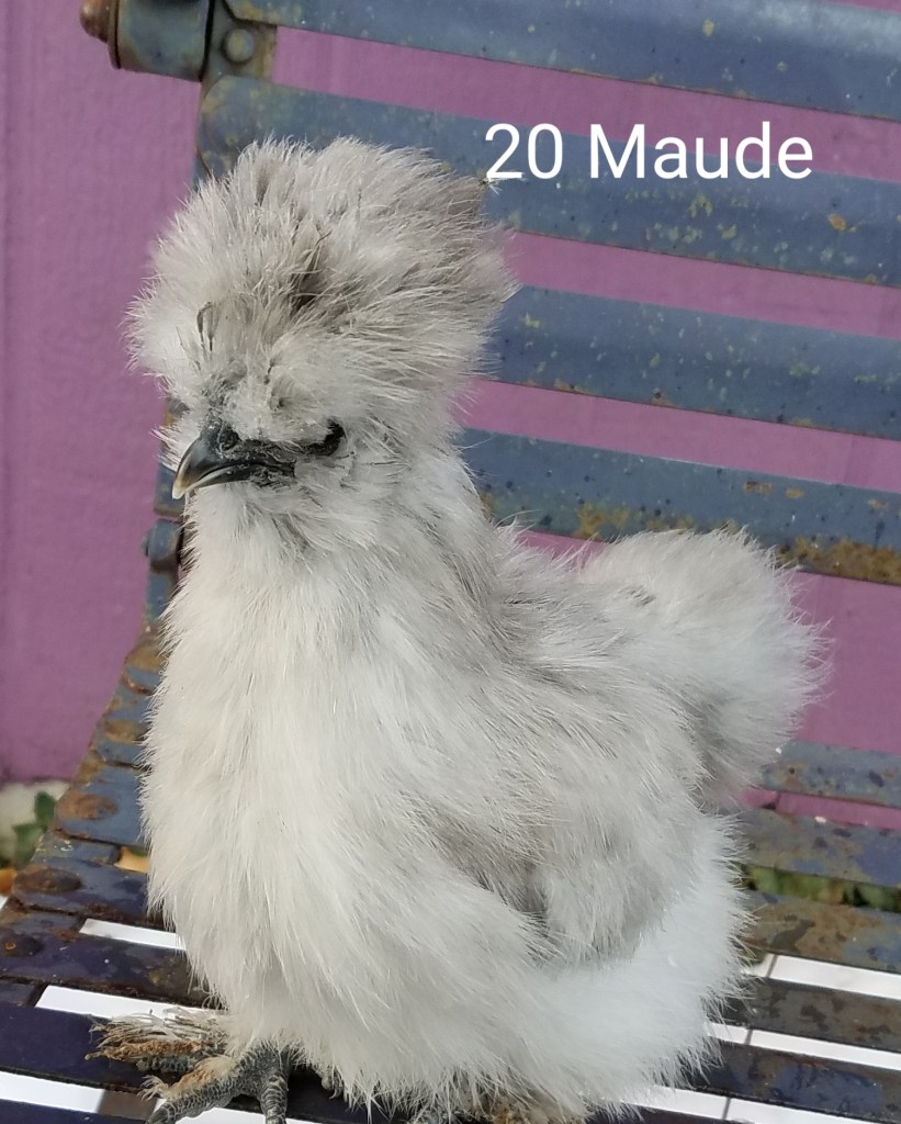Cecilie is a Grey partridge colored 4 month old silkie pullet. She is $80.Lotte is Partridge colored 4 month old female silkie pullet. She is $80.Angel is a partridge colored 4 month old female silkie pullet. She is $80.Serenity is a dark partridge colored 4 month old female silkie pullet. She is $80 SOLDViolet is a Grey Partridge colored 4 month old female silkie pullet. She is $80.Peace is a black colored 4 month old female silkie pullet. She is $80.Aurora is a grey colored 4 month old female silkie pullet. She is $80.Camelia is a dark blue colored 4 month old female silkie pullet. She is $80.Truth is a black colored 4 month old female silkie pullet. She is $80. SOLDClara is a light silver colored 4 month old female silkie pullet. She is $80.Priscilla is a light splash colored 4 month old female silkie pullet. She is $80. SOLDWinifred is a white colored 4 month old female silkie pullet. She is $80. SOLDEliza is a white colored 4 month old female silkie pullet. She is $80.Verity is a white colored 4 month old female silkie pullet. She is $80.Maude is a light blue colored 4 month old female silkie pullet. She is $80. SOLDKrystina is a partridge colored 4 month old female silkie pullet. She is $80.Monika is a light blue colored 4 month old female silkie pullet. She is $80.
