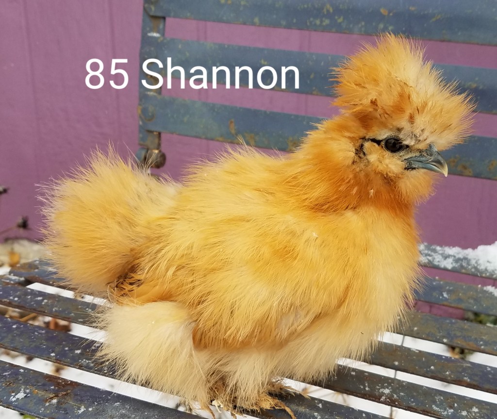Cecilie is a Grey Partridge colored 4 month old female silkie pullet. She is $80.Lotte is a Partridge colored 4 month old female silkie pullet. She is $80.Angel is a Partridge colored 4 month old female silkie pullet. She is $80.Violet is a Grey Partridge colored 4 month old female silkie pullet. She is $80.Peace is a black colored 4 month old female silkie pullet. She is $80. SOLDCamelia is a Dark Blue colored 4 month old female silkie pullet. She is $80.Clara is a silver colored 4 month old female silkie pullet. She is $80.Verity is a White colored 4 month old female silkie pullet. She is $80.Krystina is a Partridge colored 4 month old female silkie pullet. She is $80.Briana is a Black colored 4 month old female silkie pullet. She is $80. SOLDFiona is a Partridge colored 4 month old female silkie pullet. She is $80.Shannon is a Buff colored 4 month old female silkie pullet. She is $80.Lorna is a black colored 4 month old female silkie pullet. She is $80. SOLDMonika is a blue colored 4 month old female silkie pullet. She is $80.Eliza is a white colored 4 month old female silkie pullet. She is $80.Aurora is a Grey colored 4 month old female silkie pullet. She is $80.