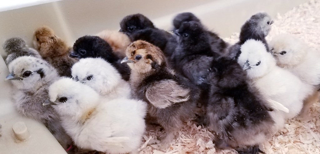 I currently have one week old silkie chicks available. They are $16 each. The chicks are not sexed. I have 4 grey and 15 white. SOLD OUT
