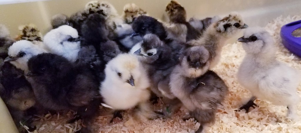 I currently have one week old silkie chicks available. They are $16 each. The chicks are not sexed. I have 3 partridges, 6 splash, 2 grey, 1 grey partridge, 4 blue and 5 black.