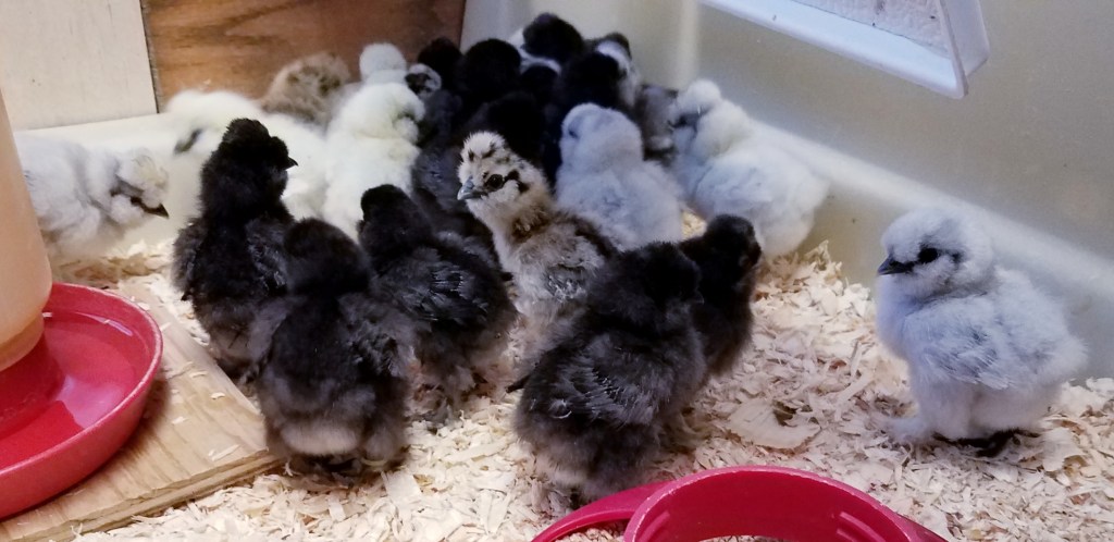I currently have one week old silkie chicks available. They are $16 each. The chicks are not sexed. I have 3 partridge, 4 splash, 4 white, 3 grey, 3 blue and 11 black.