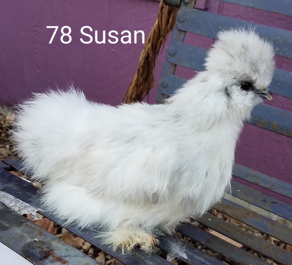Susan is a light splash colored, 4 month old female silkie pullet. She is $80. SOLD PENDING PICK UP