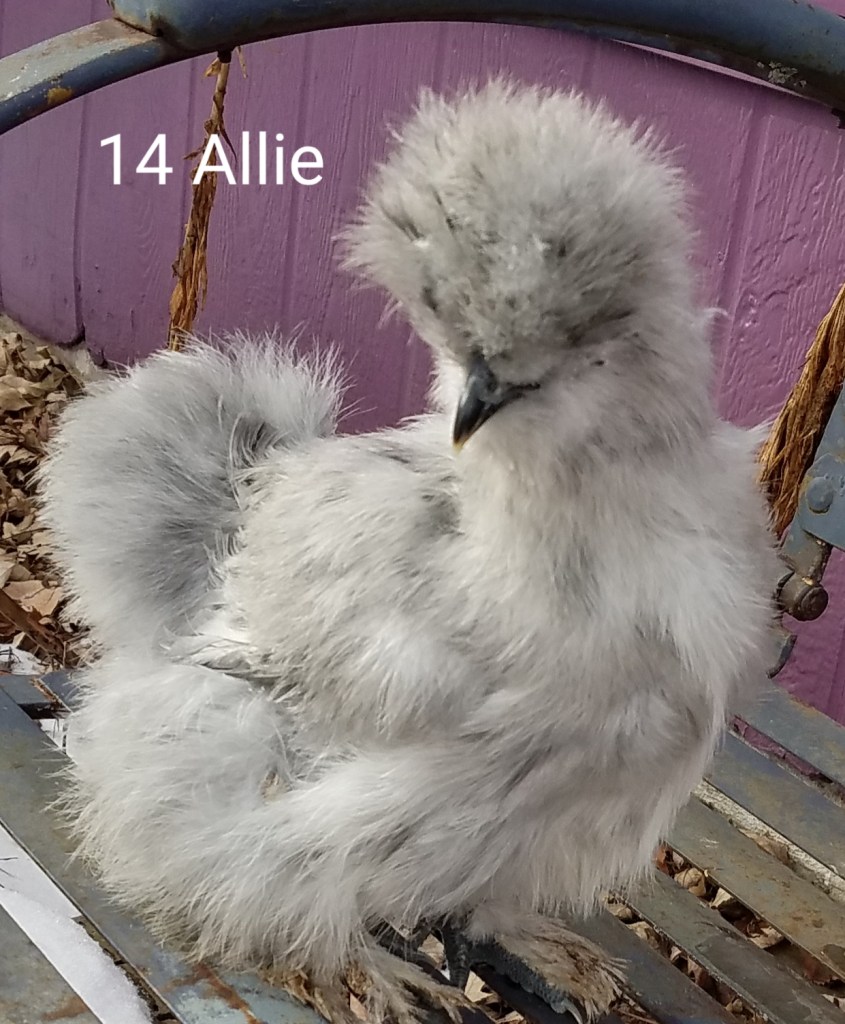 Allie is a blue/splash colored, 4 month old female silkie pullet. She is $85. SOLD