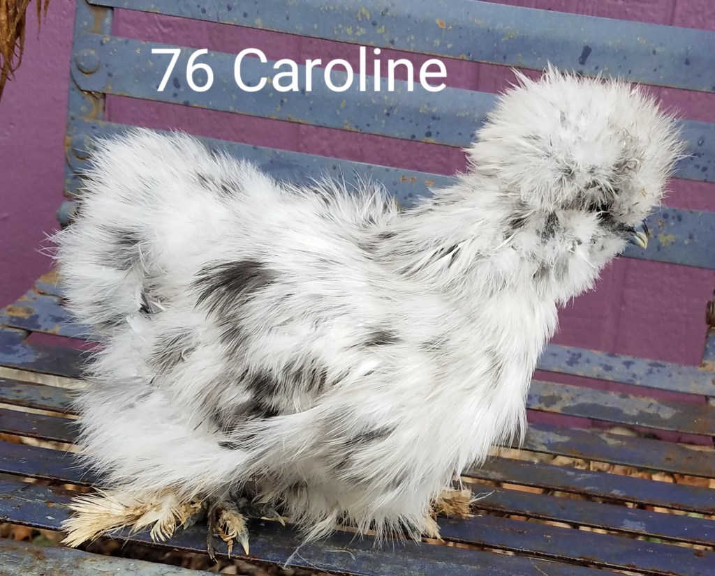 Caroline is a splash colored, 4 month old female silkie pullet. She is $85. SOLD