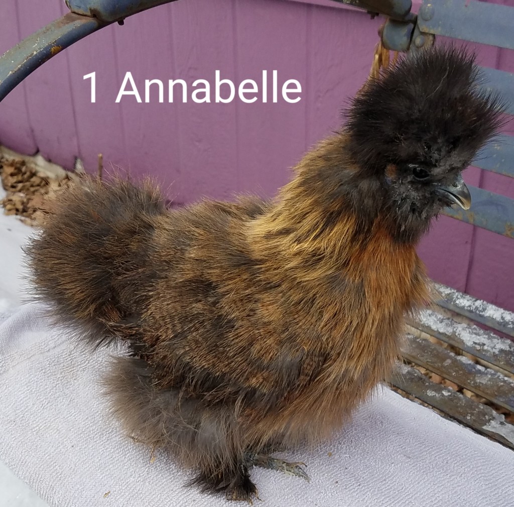 Annabelle is a partridge colored, 4 month old female silkie pullet. She is $85. SOLD PENDI