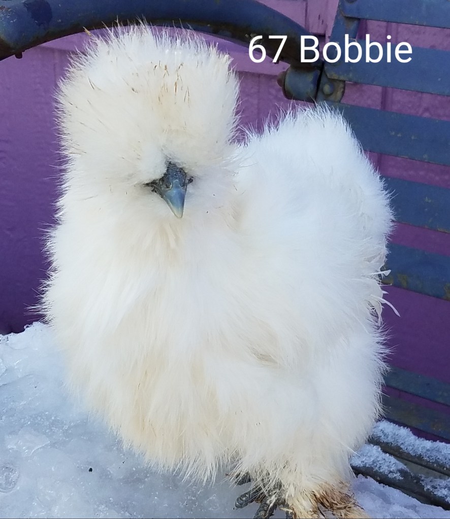 Bobbie is a white colored, 4 month old female silkie pullet. She is $85. SOLD PEND”ING PICKUP