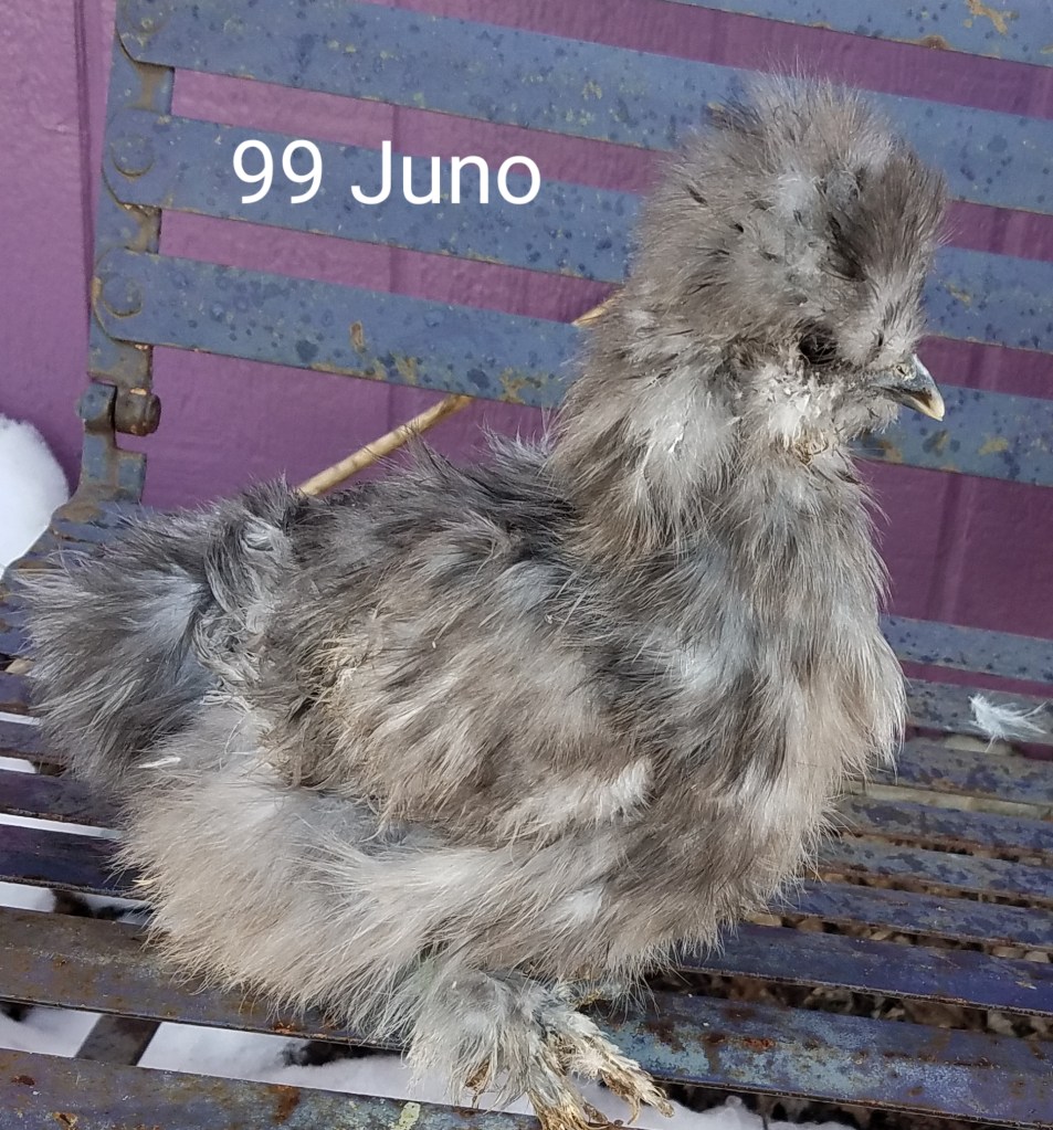 Juno is a blue colored, 4 month old female silkie pullet. She is $85. SOLD