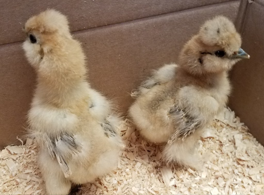 I currently have one week old silkie chicks available. They are $17 each. The chicks are not sexed. I currently have 2 buff. SOLD