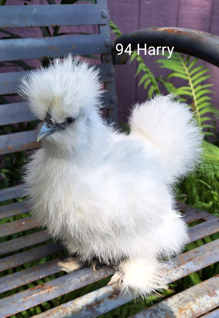 Harry is a white colored, 4 month old MALE silkie cockerel. He is $40.
