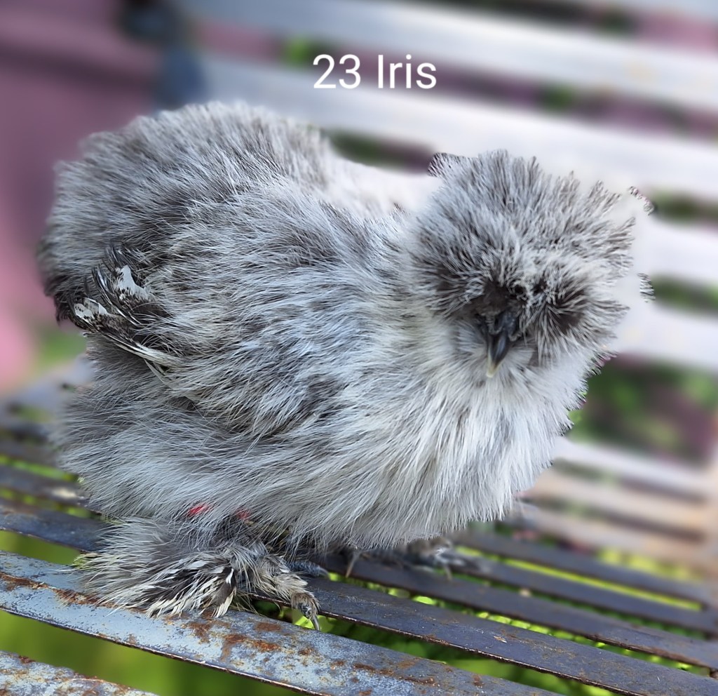 Iris is a grey colored, 4 month old female silkie pullet. She is $85. SOLD