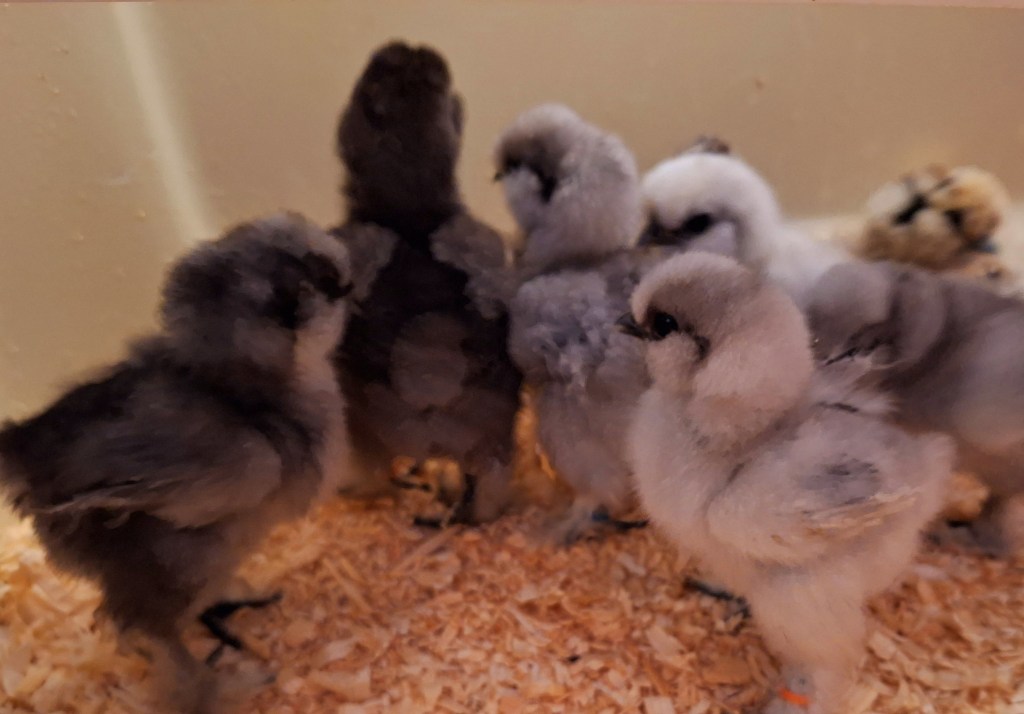 I currently have one week old silkie chicks available. They are $17 each. The chicks are not sexed. I currently have 2 grey, 1 partridge, 2 blue, 1 black and 2 white.