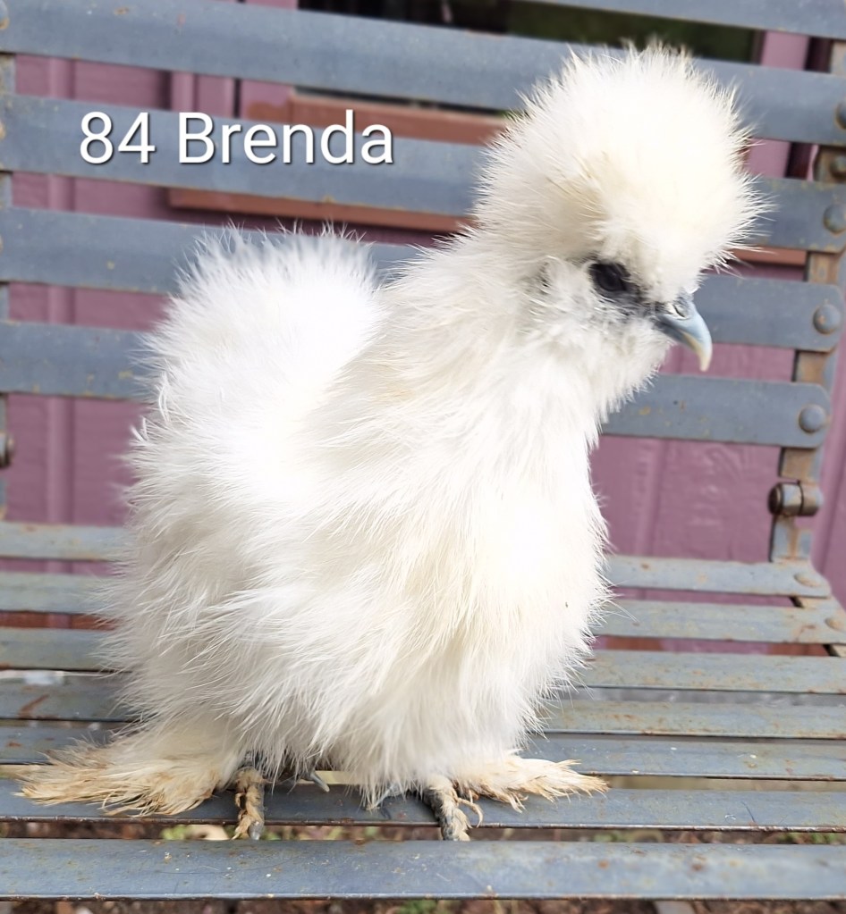 Brenda is a white colored, 4 month old female silkie pullet. She is $85. SOLD