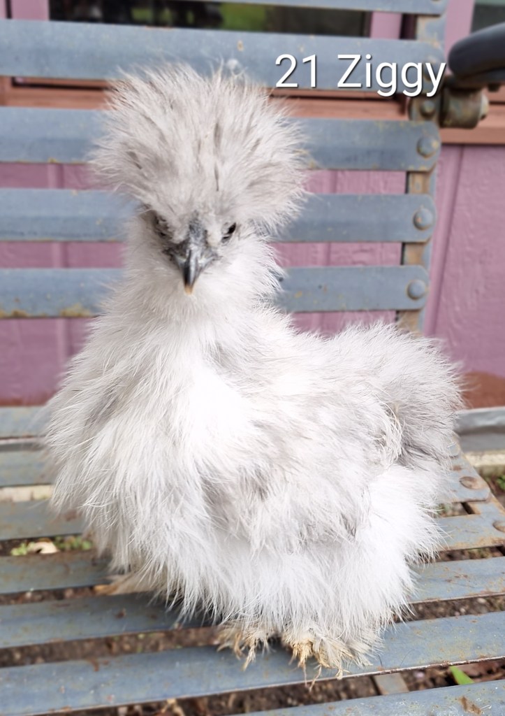 Ziggy is a splash colored, 4 month old MALE silkie cockerel. He is $40. SOLD