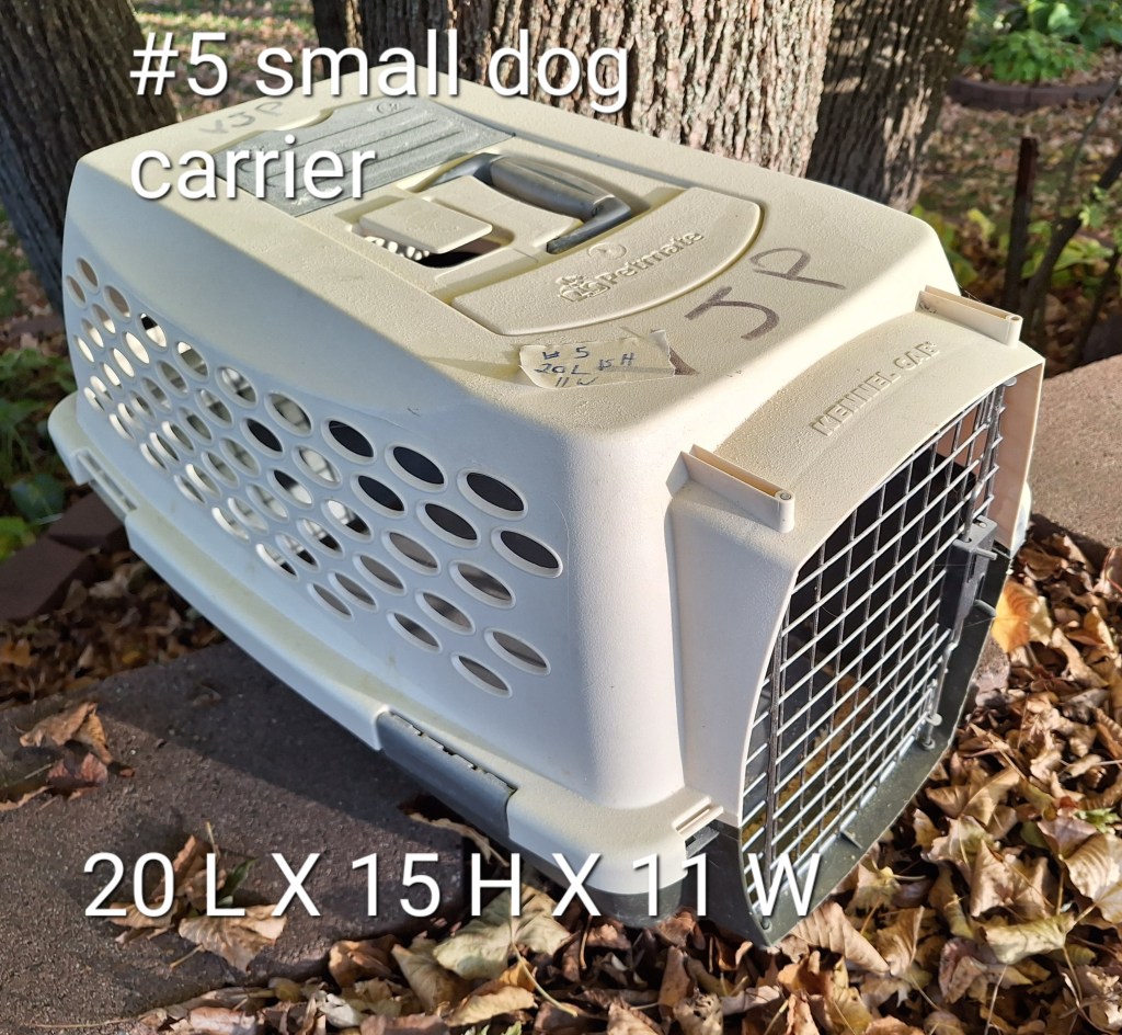 I have 6 used animal carriers in various sized for sale. They are $25 each.