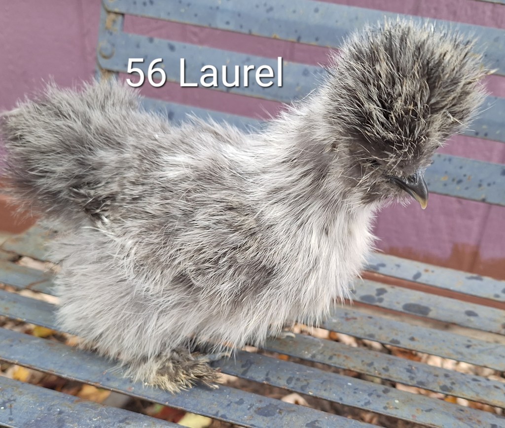 Laurel is a grey colored, 4 month old female silkie pullet. She is $85.