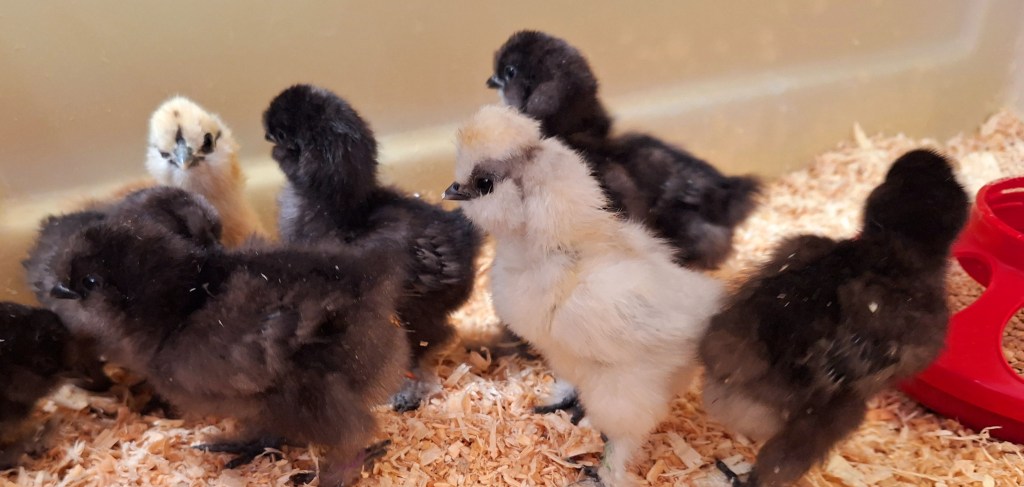 I currently have one week old silkie chicks available. They are $17 each. The chicks are not sexed. I currently have 2 partridge, 1 splash, 7 black, 1 grey and 1 white.