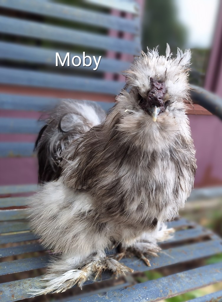 Moby is a splash colored, 3 year old adult MALE silkie rooster. He is $40. SOLD