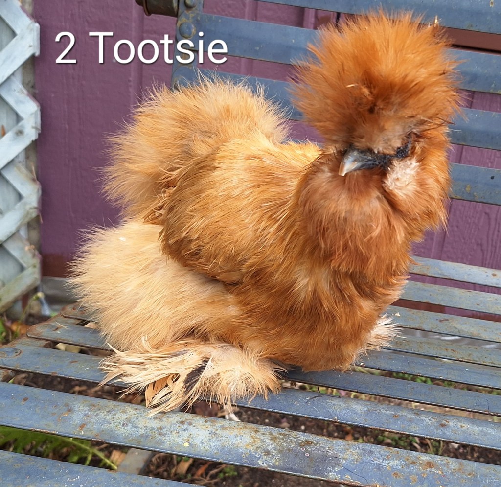 Tootsie is a buff colored, 3 year old silkie hen. She is $60. SOLD