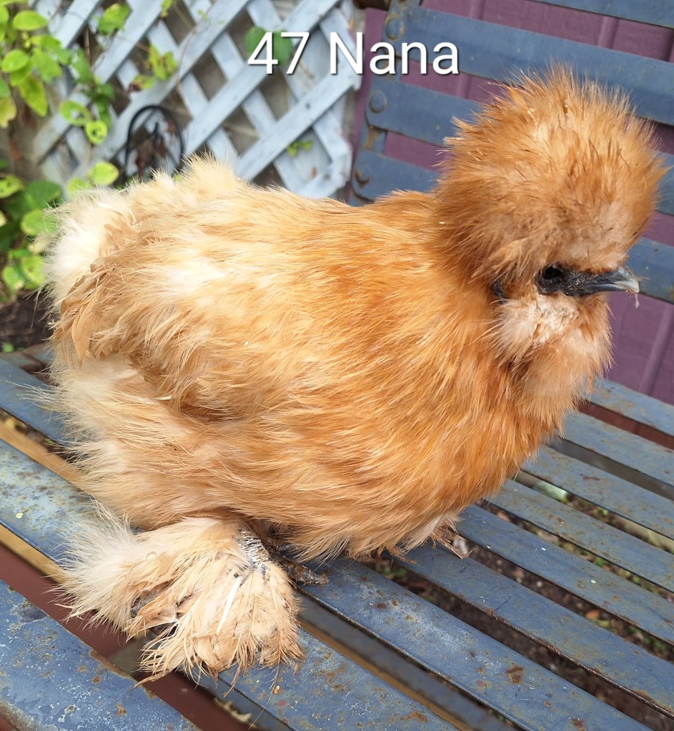 Nana is a buff colored, 3 year old silkie hen. She is $60.