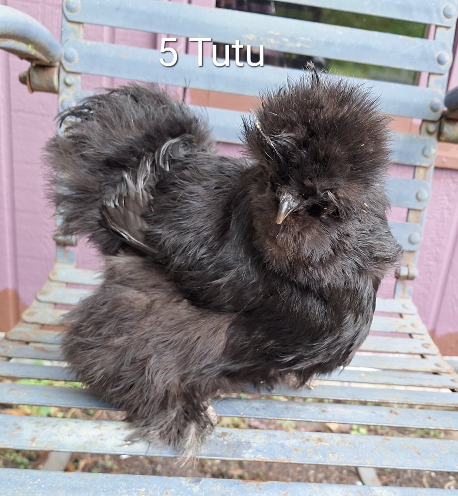 Tutu is a black colored, 3 year old silkie retirement hen. She is $60. SOLD