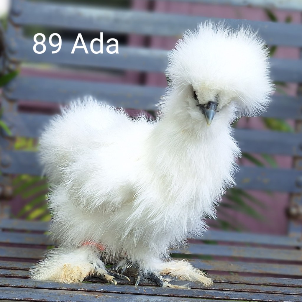 Ada is a white colored, 4 month old female silkie pullet. She is $85.
